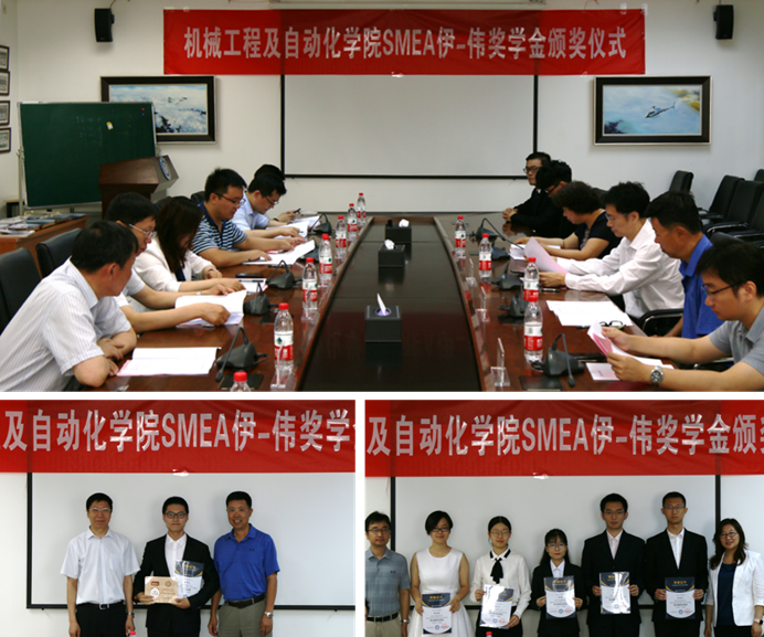 校友企业深圳市伊天行技术有限公司每年捐赠40万元,连续5年,共计200万元,旨在激励和支持北航机械工程及自动化学院优秀本科生,培养学生脚踏实地、求真务实、坚持不懈、积极乐观,追求卓越的精神,为本科学生提供更多的综合能力训练与实际运用经验的资源。其中:每年10万元用于设立“SMEA伊-伟”奖学金,奖励综合素质优秀、学习成绩优异的二、三、四年级本科生;30万元用于支持本科生开展科技创新、社会实践等工作。 “SMEA伊-伟”奖学金设立3个奖项:面向四年级设立的SMEA奖章为学院本科生最高荣誉(10名/年),三年级综合素质优秀奖(5名/年)和二年级学习成绩优秀奖(5名/年)。