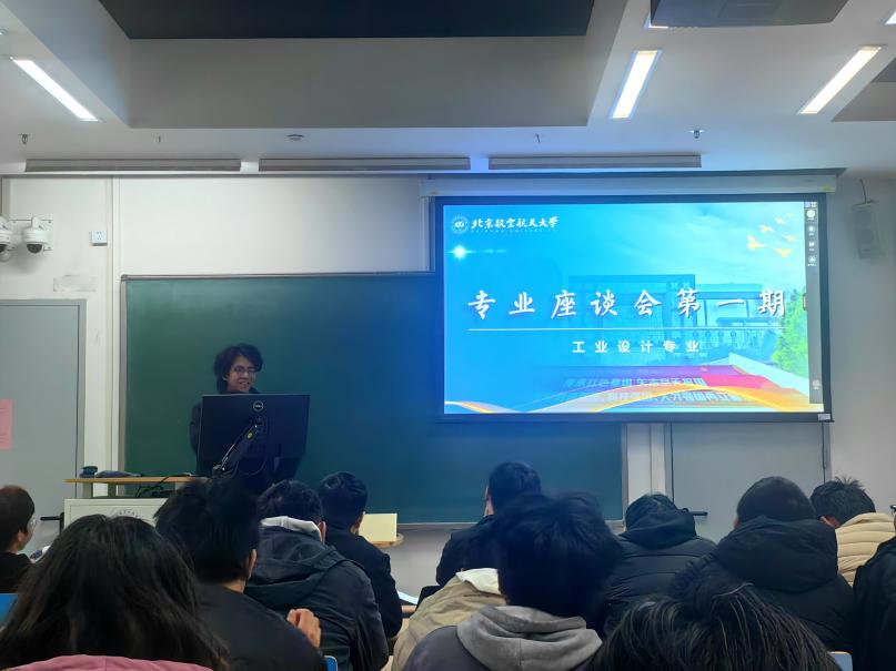 座谈会由2023级本科辅导员王一帆主持,首先介绍了北航工业设计专业的历史与优势,就专业未来发展与就业方向进行深入解读,以学生为中心,解答学生提出的问题和对作品集、作品展板与简历的制作方法进行分享教学,并鼓励学生积极参加科研科创,发挥设计专业的专属优势。
