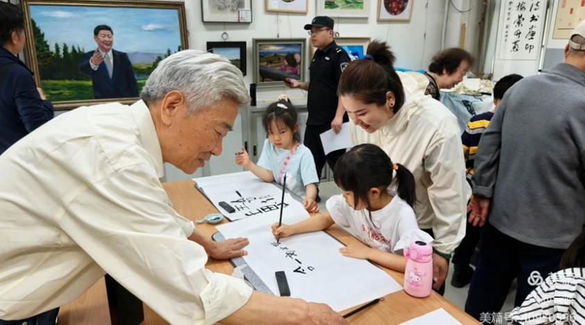 他为北航大学生开设书法体验课,指导北航幼儿园孩子们用稚嫩的小手写出“知行合一”四个字。他带领老年社团与大学生书画社团共建,老少一起探讨美的艺术。他还带领北航学子参观“井冈山精神”主题画展,在艺术熏陶中感悟信仰之美。