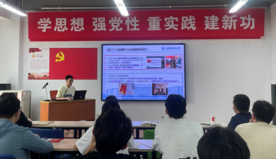 首先由Y702党支部书记张贺栋同志对支部近期开展的党建活动进行经验分享与总结。Y702支部注重理论学习,成立了《习近平著作选读》读书班,读原著学原文悟原理,由支部支委领读,分篇目进行学习,邀请北航研究生宣讲团讲师做专题讲座,推动主题教育走深走实。该支部本学期开展了多次特色党建活动,包含“健康月”系列活动、爱国主义教育基地参观、红色观影等,丰富组织形式,调动同志们的积极性,累计参与200余人次,取得了良好实效。